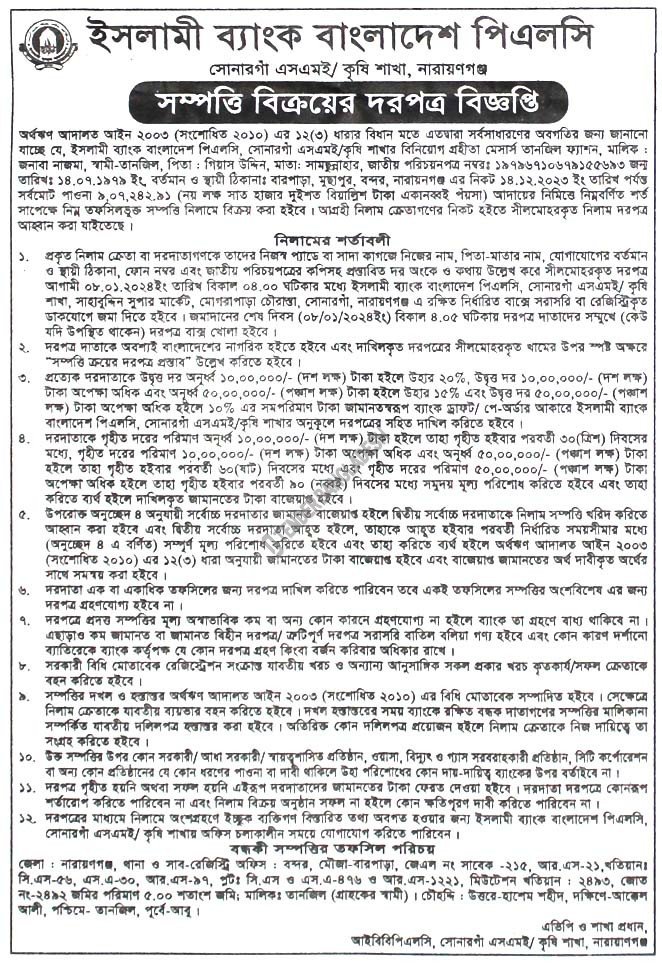 | Tender organization | Islami Bank Bangladesh Ltd |