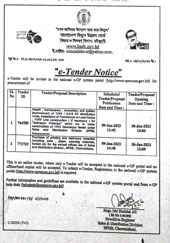 | Tender organization | Bangladesh Power Development Board (PDB) |