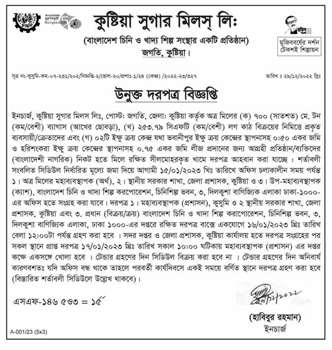 | Tender organization | Kustia Sugar Mills Ltd. |