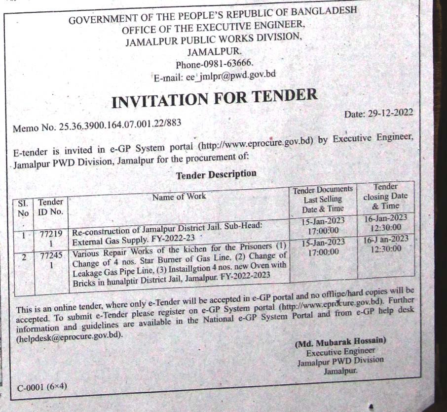 | Tender organization | Jamalpur PWD |