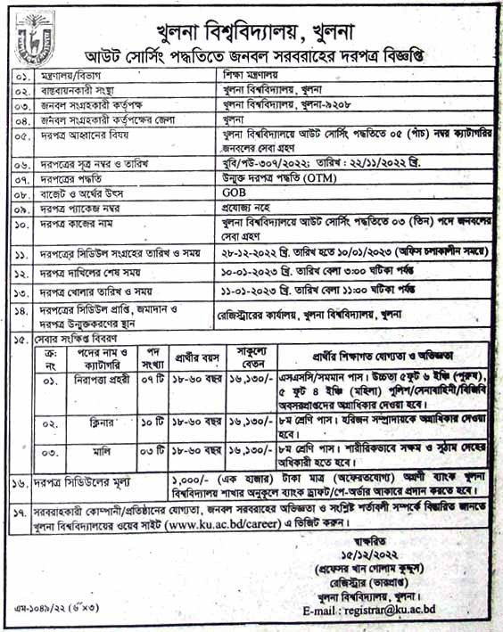 | Tender organization | Khulna University |